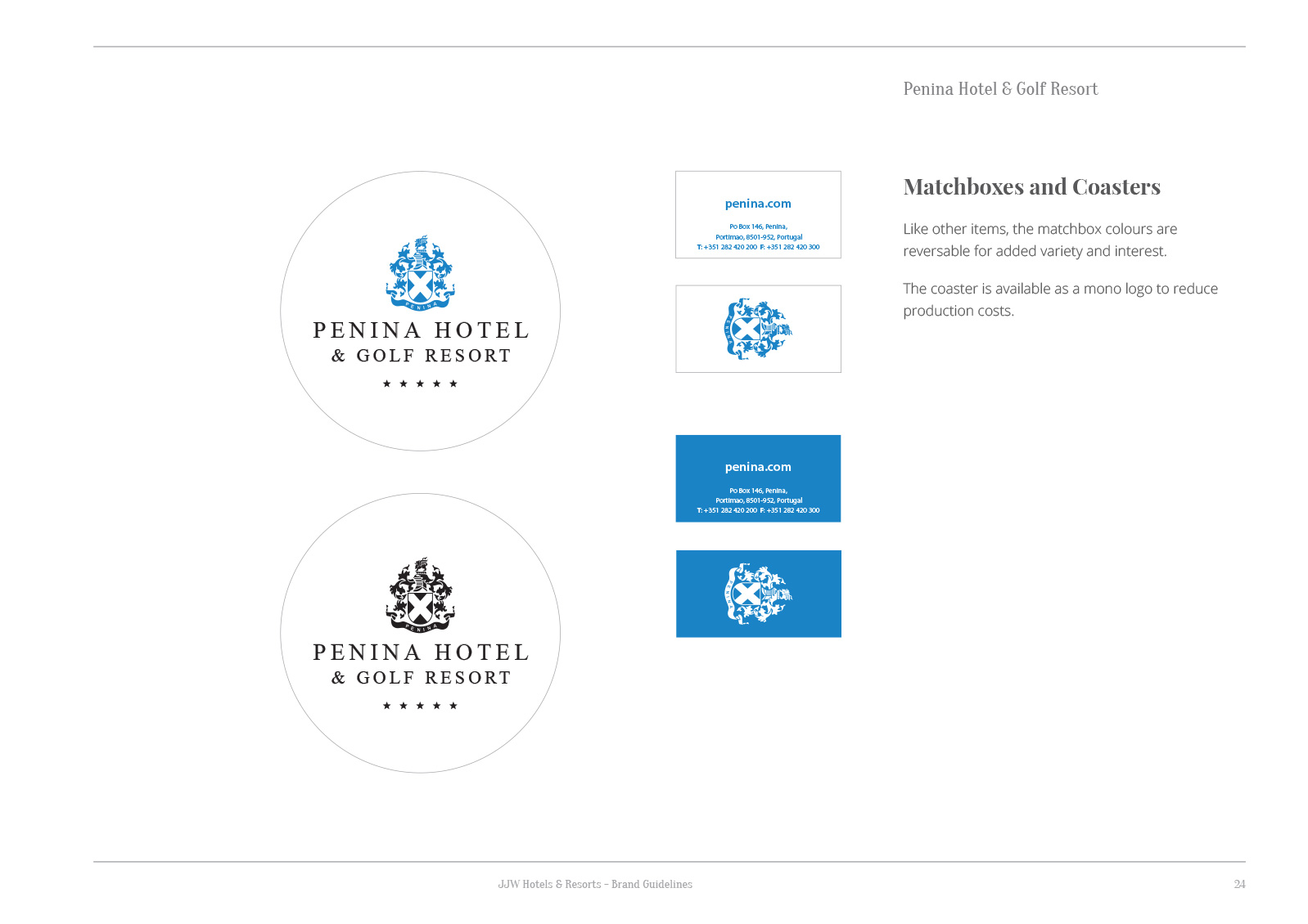 I created a new logo for Penina Hotel and Golf Resort near Portimao, Algarve. The hotel was previously managed by Meridian and their branding was very minimal. I unearthed and redrew an old heraldic crest that had been used back when the hotel first opened that features the St. Andrew’s cross of Scotland and pays homage to the Royal and Ancient Golf Club of St. Andrews, the spiritual home of golf.