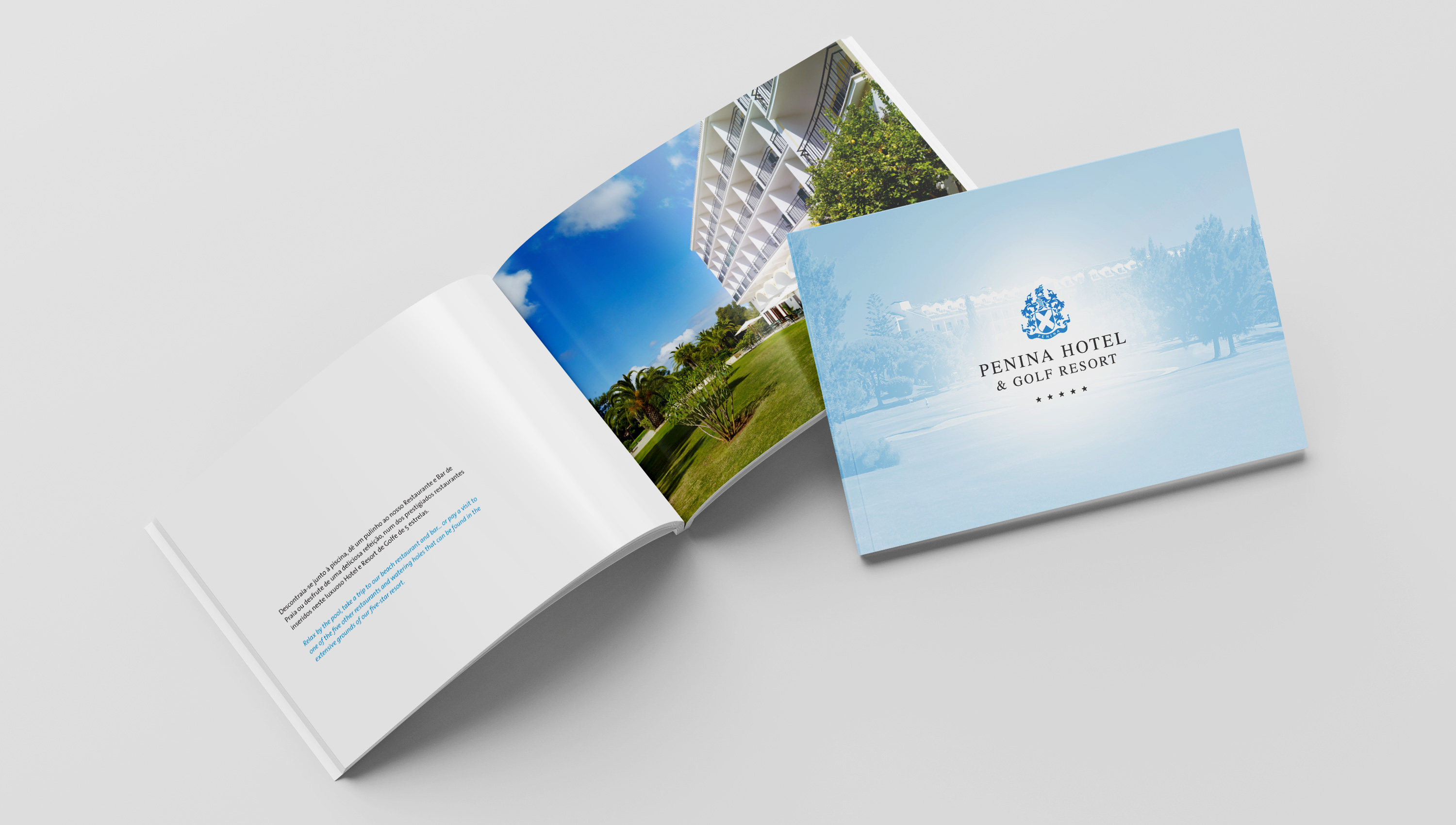 An A5 landscape brochure was crested to promote the hotel. The wide format allows space to showcase the beautiful hotel and golf photography and allows dual language layouts to have plenty of breathing space